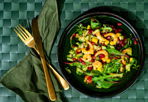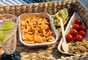 - Fyll pitabrødene godt opp med salatblandingen og de tandoorimarinerte rekene og nyt!