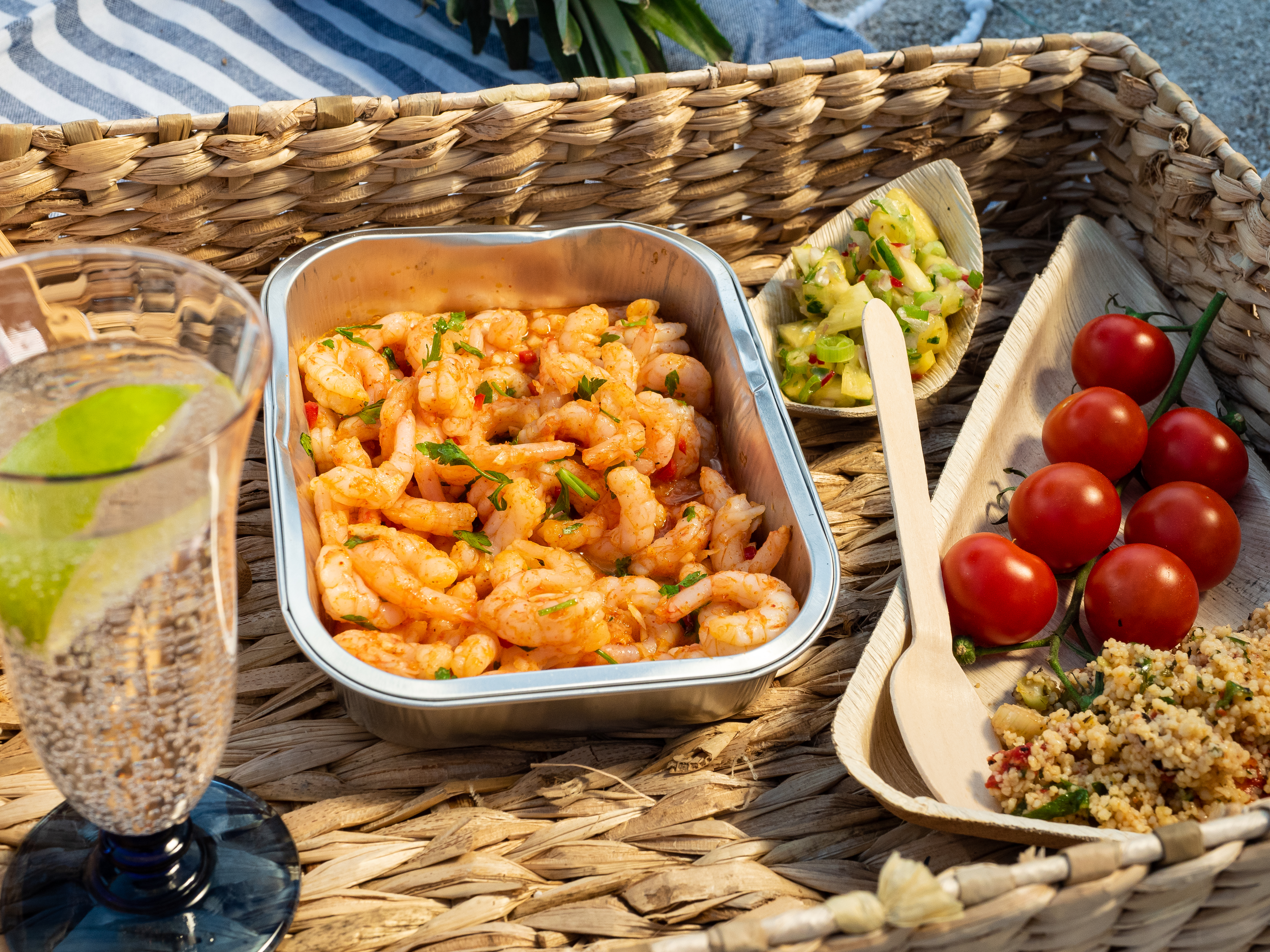 - Fyll pitabrødene godt opp med salatblandingen og de tandoorimarinerte rekene og nyt!