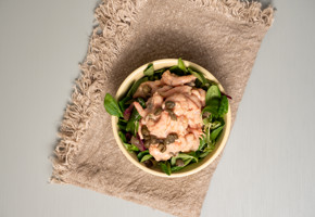 - Server og nyt tandoorimarinerte reker med fargerik salat!